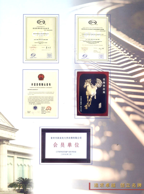 公司現(xiàn)有職工258名,具有高、中級職稱的管理人員20多名,經(jīng)過培訓(xùn)、考核合格的生產(chǎn)工人200多名。設(shè)生產(chǎn)安全部,技術(shù)質(zhì)量部,設(shè)備動力部,經(jīng)理辦公室和生產(chǎn)車間、生產(chǎn)班組等管理的生產(chǎn)部門。本公司是我市熱處理行業(yè)第一個通過國家質(zhì)量體系認證的企業(yè),同時也是我市軌道交通產(chǎn)業(yè)聯(lián)合會、省科技廳市科技局定點扶持的骨干企業(yè),是鐵道部戚墅堰機車車輛工藝研究所、航空航天部蘇州長風(fēng)機械總廠定點協(xié)作單位,是國外阿爾斯通、GE公司、三菱重工等多家公司的合作伙伴。
