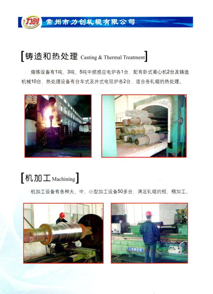 常州市力創(chuàng)軋輥有限公司(原名常州市力創(chuàng)軋廠, 創(chuàng)建于2000年),本公司專業(yè)生產(chǎn)鑄鋼軋輥、鑄鐵軋輥及鑄鋼堆焊的服務(wù),生產(chǎn)經(jīng)驗豐富,技術(shù)力量強大,鑄造能力雄厚。 公司主導(dǎo)產(chǎn)品各類優(yōu)質(zhì)軋輥是集冶煉、鑄造、熱處理及機加工為一體的高科技含量產(chǎn)品,其生產(chǎn)工藝裝備先進,檢測設(shè)備完善,經(jīng)過技術(shù)中心的研發(fā),建成整體鑄鐵鑄鋼軋輥,離心復(fù)合鑄鐵軋輥等優(yōu)質(zhì)軋輥生產(chǎn)線,生產(chǎn)多系列多材質(zhì)多規(guī)格的軋輥及輥環(huán),產(chǎn)品暢銷80多家國內(nèi)鋼鐵企業(yè),各項技術(shù)指標(biāo)均滿足客戶使用要求,得到用戶充分肯定,具有強勁的競爭實力。 我公司連續(xù)多年被評為明星企業(yè),文明單位,重合同守信用企業(yè),并通過ISO9001:2008最新質(zhì)量體系認(rèn)證。 我公司堅持以“質(zhì)量至上,誠信為本”為宗旨,熱忱歡迎新老客戶洽談合作,竭誠為廣大客戶提供優(yōu)質(zhì)產(chǎn)品和良好服務(wù)。