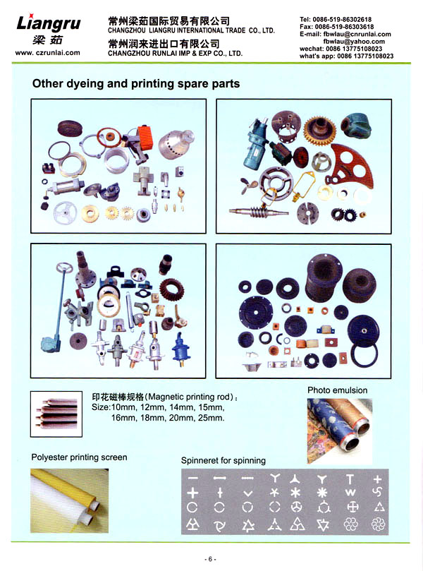 常州梁茹國際貿(mào)易有限公司是國內(nèi)外雙用鋏,T型刮漿片,感光膠, 640軸承,剝邊器,阿托斯滑塊,印花用漿泵,針板座, 印花用圓網(wǎng),印花圓筒網(wǎng),華磁棒,針板,毛刷輪,定型機鏈條, 切布刀片的主要供應(yīng)商 。我們公司位于常州市,臨近上海,交通十分便利。