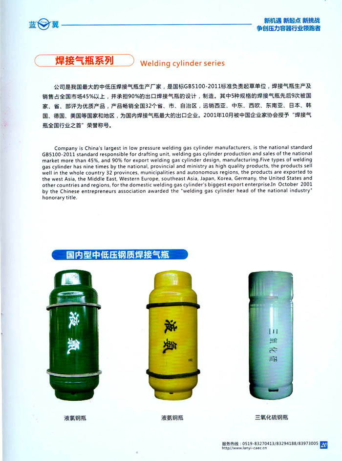 主要產(chǎn)品 中高壓航空滅火瓶、鋼質(zhì)焊接氣瓶、第三類低,中壓力容器、蒸壓釜、換熱器、民用核承壓設(shè)備、5至160立方米各類介質(zhì)貯罐、各種型號(hào)罐式集裝箱、生物工程設(shè)備、液化天然氣(LNG)車用氣瓶、液化天然氣(LNG)加氣站、乙炔工程設(shè)備、樹脂生產(chǎn)設(shè)備、核電工程設(shè)備、船舶專用設(shè)備等。