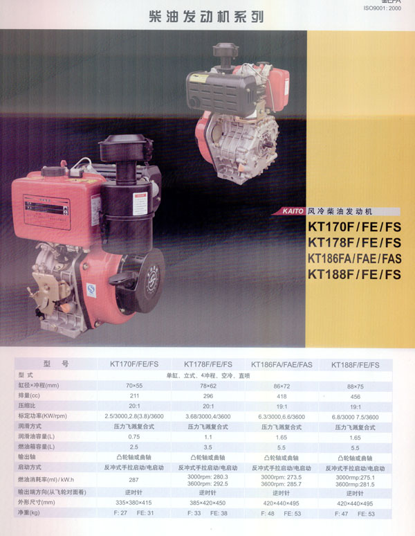 常州常柴集團凱拓電動機械有限公司是常柴集團所屬,集自主研發(fā)設計及生產(chǎn)的出口型產(chǎn)業(yè)基地。 常柴集團是一家擁有近一萬名在職員工的國有大型企業(yè),年均產(chǎn)值近三億美元,平均出口總額近八千萬美元,同時也是中國內(nèi)地五百強企業(yè)之一。 常柴集團凱拓電動機械有限公司的主要產(chǎn)品流水線基于日本YAMMAR型超級風冷柴油發(fā)動機,以及其配套發(fā)電機組,水泵機組和數(shù)碼變頻發(fā)電機,我司目前擁有常柴集團及凱拓品牌的知名商標使用權(quán),旗下所有分廠如機械加工廠、鑄造廠以及發(fā)動機廠等生產(chǎn)基地都通過了ISO9001-2000質(zhì)量管理體系認證。我司自主品牌凱拓柴油發(fā)電機組KT5000SE,KT5000LE,數(shù)碼變頻發(fā)電機KT1000Ti以及柴油發(fā)動機186F均通過德國TUV公司的CE認證,美洲EPA認證,因此出口量很大,近年來公司產(chǎn)品已遠銷美洲、歐洲、非洲以及東南亞國家和地區(qū)! ∫劳谐2窦瘓F的領先技術(shù),強有力的管理體制,以及健全的產(chǎn)品質(zhì)量體系,我司通過不斷優(yōu)化自主設計研發(fā),完善管理機制,期望能夠以提供最優(yōu)質(zhì)的產(chǎn)品售后服務進一步拓展國際市場! ”局皥F結(jié)、合作、奮斗”的公司理念,我們希望著眼全球,與更多潛在的客戶開展合作交流,最終實現(xiàn)雙贏的戰(zhàn)略目標。