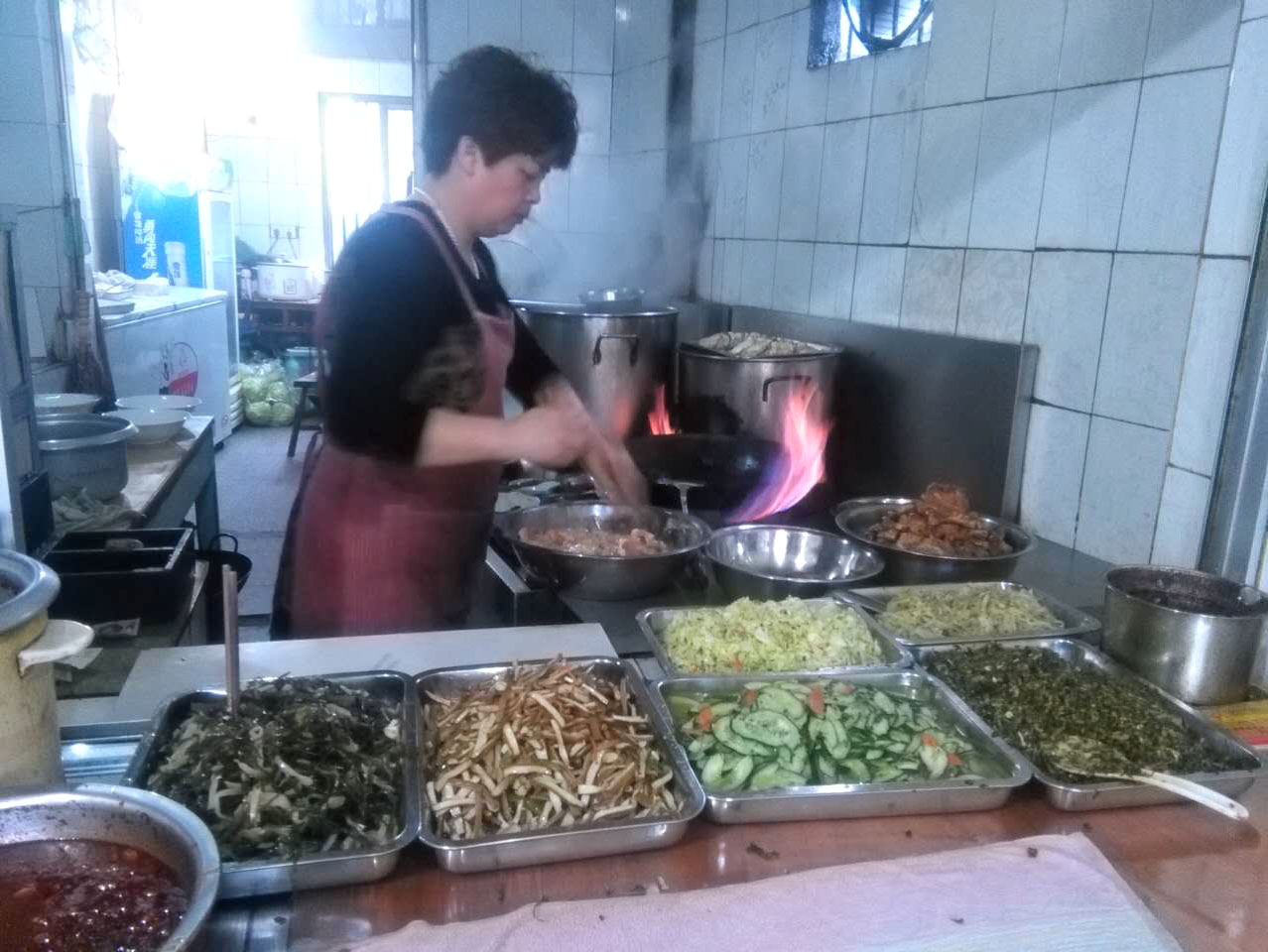 魁元面館,橫山橋江南路,沿街的店鋪。老板娘徐文霞,從公婆手里接過這個(gè)店面已有20多年。最具特色的菜品是肉圓跟大排。每天凌晨3點(diǎn)就要起來做準(zhǔn)備,菜都是現(xiàn)燒現(xiàn)賣。 特色小菜: 肉圓:有人特意遠(yuǎn)道而來打包走 大排面:每天能賣出100來塊大排 大腸 雞蛋:每天煎的雞蛋就差不多300來個(gè) 小餛飩、大餛飩 限時(shí)供應(yīng): 咸鴨蛋、肉粽、蛋黃粽:每天都要包,放爐子燒,在端午前后供應(yīng),很好吃。每天都有人打包幾個(gè)咸鴨蛋或者粽子拿回家,送人 油酥餅(圖3-4)、糍團(tuán)餅(圖5-6)、韭菜餅(圖7-8) 油酥餅每天晚上做,涼了更好吃,更酥更脆,里面都是很香的黑芝麻;糍團(tuán)餅,每天中午擺攤熱了煎鍋開始煎,糯米做成,用菜籽油煎至金黃,餡兒是黑芝麻瓜子仁;韭菜餅是最受歡迎的,每天都有好多人排隊(duì)來買。供應(yīng)時(shí)間:每年的4月份到11月份 下午1點(diǎn)到5點(diǎn)半。