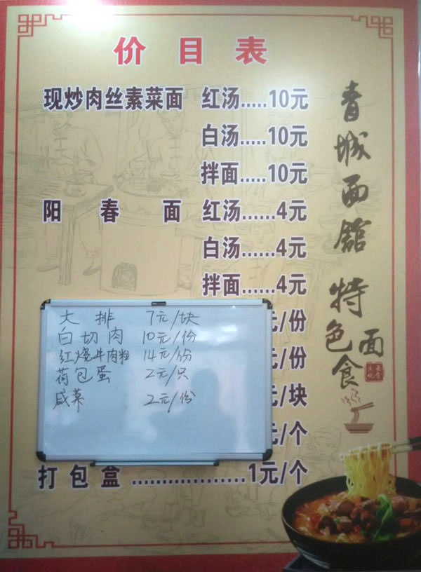 武進(jìn)區(qū)青城面館經(jīng)營(yíng)面積280平方米左右,主要特色是現(xiàn)炒肉絲,素菜蓋澆面,面館創(chuàng)始人今年63歲的王蘭珍,她對(duì)美食有著高于常人的悟性。她開(kāi)過(guò)饅頭店,開(kāi)過(guò)小飯館,承包過(guò)食堂,燒菜、取料樣樣在行,吃過(guò)的人常常贊不絕口。 20世紀(jì)初,在跟德興面館的老師傅學(xué)了做面手藝后,王蘭珍萌生了開(kāi)一家面館的想法,除了可以養(yǎng)家糊口,最重要的是想讓更多人嘗嘗自己的手藝。于是,她在自己的住處擺起了幾張桌椅,面館就算正式營(yíng)業(yè)了。因?yàn)榧易∏喑菢,王蘭珍干脆取名“青城面館”。 “從早上5點(diǎn)多開(kāi)始營(yíng)業(yè),到下午1點(diǎn)多打烊,一天至少要賣(mài)掉300多碗面,用掉近160斤面粉!睘楹吻喑敲骛^的面條如此受歡迎,兒媳婦陸偉紅說(shuō)秘訣在于湯頭和澆頭。湯頭分白湯和紅湯,白湯是由10斤豬骨頭熬制而成,湯色清澈而味道濃郁;紅湯以骨頭湯作底湯,加入茴香、甘草、草果等20多種中草藥,以及糖、醬油等調(diào)味品,鮮而不腥,散發(fā)出陣陣香味。 和一般面館事先燒制好澆頭,放在盆里供客人選擇不同,青城面館的澆頭都是一份份現(xiàn)炒的,特別講究食材的新鮮。就拿暢銷(xiāo)的肉絲蔬菜紅湯面來(lái)說(shuō),要先起猛火,把肉絲、木耳、蘑菇、青菜等食材放一起煸炒至香,然后澆在撈起的面條上。一碗面出來(lái),現(xiàn)炒的澆頭與面條融合,味道香郁至極。 遙觀人的早晨,醒得有些早。對(duì)很多遙觀人來(lái)說(shuō),美好的一天是從青城面館開(kāi)始的。那一碗碗現(xiàn)炒的蓋澆面,筋道爽滑、醬香味濃,溫存著他們的胃與記憶,帶來(lái)刻進(jìn)骨子里的家鄉(xiāng)味道。