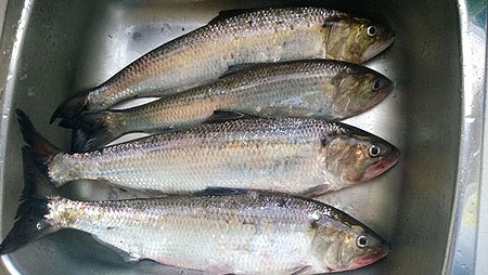 鰣魚體扁而長(zhǎng),色白如銀,肉味鮮美,列全國(guó)“鰣、甲、鯧、黃”四大名魚之首,與刀魚、河豚一起被人們稱為“長(zhǎng)江三鮮”。