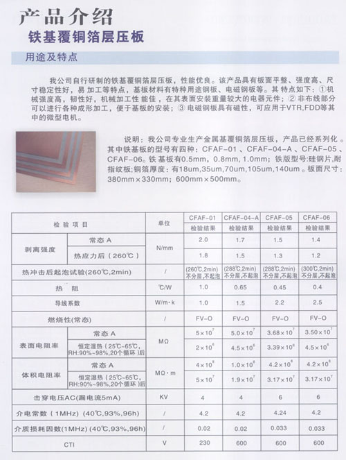 本公司是一家專業(yè)從事研發(fā)、生產(chǎn)金屬基(鋁基、鐵基、銅基)覆銅箔層壓板的民營(yíng)科技企業(yè)。公司位于江蘇省常州市新北區(qū)春江鎮(zhèn),京滬高速鐵路火車站落戶本地區(qū),相距8Km,滬寧高速公路出口相距8Km,常州民航機(jī)場(chǎng)相距18Km,交通便捷,環(huán)境優(yōu)美。 公司占地面積18000㎡,廠房面積38000㎡,員工300多人,金屬基覆銅板和金屬基印制板的年產(chǎn)能分別為800,000㎡和380,000㎡。公司技術(shù)力量雄厚,其中高級(jí)工程師20名,技術(shù)人員50名,并與本地大學(xué)掛鉤。公司擁有全套的金屬基覆銅箔層壓板檢驗(yàn)設(shè)備。自主開發(fā)的產(chǎn)品并獲得國(guó)家實(shí)用新型專利,專利號(hào):ZL200620165311.4、ZL200820185660.1、ZL200920035286.1、ZL200920255499.5、ZL200920284561.3。 以及多項(xiàng)發(fā)明專利,專利號(hào):ZL 200910026210.7、申請(qǐng)?zhí)枺?00910234775.4。自主開發(fā)的散熱器基覆銅箔印制電路板層壓板,已申請(qǐng)發(fā)明專利,申請(qǐng)?zhí)枺?00910184663.2。 金屬基覆銅箔層壓板的特點(diǎn)就是高散熱,低熱阻,散熱效果特別好! 公司生產(chǎn)的CCAF-01型鋁基覆銅箔層壓板,熱阻為1.0℃/W,熱導(dǎo)率為1.0W/m·K;CCAF-04-A型鋁基覆銅箔層壓板,熱阻為0.65℃/W,熱導(dǎo)率為1.3~1.5W/m·K;CCAF-05型鋁基覆銅箔層壓板,熱阻為0.45℃/W,熱導(dǎo)率為2.0~2.2W/m·K,CCAF-06型鋁基覆銅箔層壓板,熱阻為:0.4℃/W,熱導(dǎo)率為2.5~2.8W/m·K。接近國(guó)際先進(jìn)水平,自主開發(fā)的散熱器基覆銅箔印制電路板層壓板,填補(bǔ)國(guó)內(nèi)空白。公司生產(chǎn)的鋁基覆銅箔板廣泛應(yīng)用于汽車點(diǎn)火器、摩托車調(diào)壓器、音箱模塊電源、通訊模塊電源、變頻模塊電源;各種大功率LED工程景觀照明:洗墻燈、投光燈、草坪燈、水底燈、噴泉燈、路燈、室內(nèi)照明、長(zhǎng)1.2米LED照明燈、手電筒及液晶顯示器等。 鐵基覆銅箔板廣泛用于微型電機(jī)和馬達(dá)驅(qū)動(dòng)器等。 銅基覆銅箔板應(yīng)用于太陽(yáng)能電站和軍工產(chǎn)品。 公司產(chǎn)品在深得國(guó)內(nèi)多數(shù)知名企業(yè)(海爾,海信,京東方等)認(rèn)可選用的同時(shí)還遠(yuǎn)銷海外,美國(guó)、德國(guó)、土耳其、芬蘭、意大利、法國(guó)、菲律賓、印度、馬來(lái)西亞、新加坡、日本、韓國(guó)及中國(guó)的港臺(tái)地區(qū)等。 公司產(chǎn)品已獲得UL全性能認(rèn)證,檔案號(hào):覆銅板E250901,印制板E348435;CQC安全認(rèn)證和ISO9001:2008質(zhì)量管理體系認(rèn)證,ISO14001:2004環(huán)境管理體系認(rèn)證。 客戶的需要是我們不懈的追求,公司將以先進(jìn)的技術(shù),科學(xué)的管理,良好的質(zhì)量,優(yōu)惠的價(jià)格為新老客戶提供精良的服務(wù)!