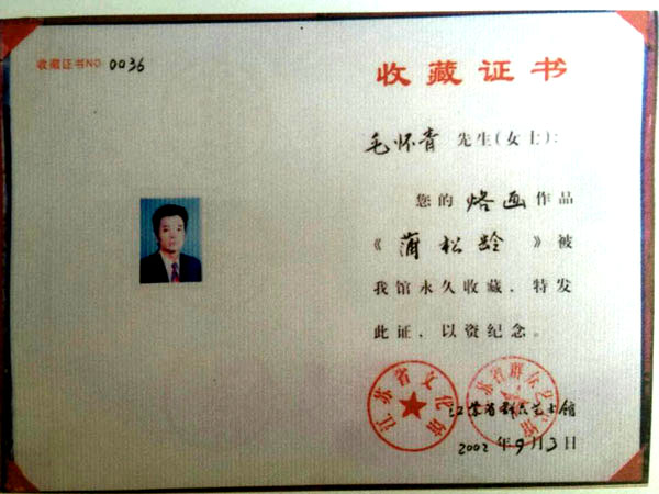 近年來,創(chuàng)作的烙畫作品分別獲得過全國、省市級的金、銀、銅獎多次。中央電視臺曾兩次播放過本人的烙畫作品,江蘇電視臺、常州電視臺也曾多次播放過本人的作品與烙畫藝術(shù)生涯,揚子晚報、常州日報、常州晚報也曾多次報導(dǎo)過本人的烙畫作品,出版物有三種版本都能查閱到介紹本的烙畫從藝生涯與藝術(shù)業(yè)績。