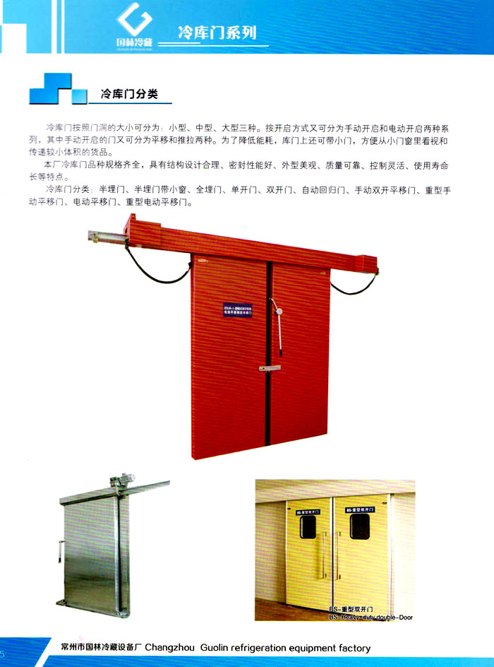 常州市國林冷藏設(shè)備廠(原武進(jìn)長虹冷藏設(shè)備廠)成立于1995年,地處江南水鄉(xiāng)中國富饒的“長江三角洲”中心區(qū)域—江蘇常州,滬寧高速、沿江高速、312國道,交通快捷,即刻到達(dá)。 國林冷庫:公司通過了ISO9001:2000質(zhì)量體系認(rèn)證,國林冷庫多次獲得“江蘇省優(yōu)質(zhì)產(chǎn)品”稱號(hào),全國質(zhì)量服務(wù)AAAAA示范單位,并且是中國食品網(wǎng)、阿里巴巴,空調(diào)制冷誠信通會(huì)員企業(yè),并與全國多家設(shè)計(jì)院技術(shù)合作,本廠的誠信服務(wù)獲得了廣大客戶的認(rèn)可。 國林冷庫:中國制冷行業(yè)的十大冷庫制造商之一,中國制冷重要工業(yè)生產(chǎn)基地。本公司***生產(chǎn)保溫庫板及冷庫制冷成套設(shè)備,庫板材料涉及不銹鋼、彩鋼板、玻璃鋼板、保溫聚氨脂板。年產(chǎn)量3000多臺(tái),庫板30多萬平方,歡迎新好客戶前來訂購。 國林制冷:公司始終堅(jiān)持:“質(zhì)量為上,追求品質(zhì)”的生產(chǎn)方針;始終信奉:“客戶為先,服務(wù)為本”的經(jīng)營理念。我們愿同廣大的新老客戶在新的世紀(jì)里,共同發(fā)展,利益雙贏,再創(chuàng)輝煌。 常州市國林冷藏設(shè)備廠***生產(chǎn)7.5公分,10公分,12公分,15公分,20公分的聚氨酯冷庫板,面板包括彩鋼板、不銹鋼板、壓花鋁板等各種板材,各種冷庫半埋門及平移動(dòng)門,各種鐵排管和鋁排管,價(jià)格優(yōu)惠,有需要的可以聯(lián)系我金文燁18761183807