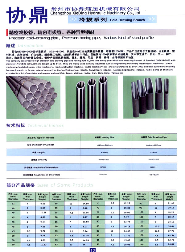 主要生產(chǎn)經(jīng)營:精密冷拔鋼管,珩磨鋼管,精密活塞桿,液壓油缸、氣缸設(shè)計(jì)制造.高精密液壓冷拔機(jī)、液壓矯直機(jī)、珩磨機(jī)、掏料機(jī)設(shè)計(jì)制造。公司設(shè)有專業(yè)的生產(chǎn)工廠,有多年從事液壓工程研究設(shè)計(jì)的專家及有豐富實(shí)踐經(jīng)驗(yàn)的工程技術(shù)人員,有專用的生產(chǎn)設(shè)備,先進(jìn)的生產(chǎn)工藝,以及完善的質(zhì)量保證體系,以確保產(chǎn)品的質(zhì)量,用最佳的售后服務(wù)為客戶增值。