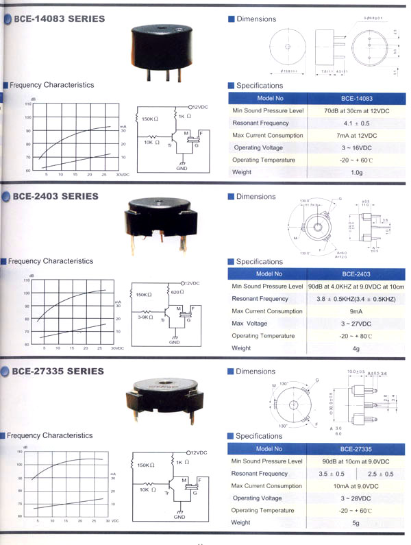 本公司生產(chǎn)的蜂鳴器結(jié)構(gòu)緊密,材質(zhì)輕,功耗低,質(zhì)量可靠,使用方便,價(jià)格合理,采用最新技術(shù)電子元件。廣泛應(yīng)用于打印機(jī)、電話、定時(shí)器、尋呼機(jī)、洗衣機(jī)、取款機(jī)、報(bào)警器、電腦終端機(jī)、復(fù)印機(jī)、電唱機(jī)、汽車及摩托車電子設(shè)備、空調(diào)設(shè)備、萬用表、遙控裝置、各種安全裝置以及便攜或電池式迷你型裝置。