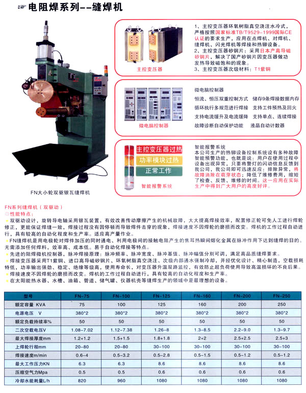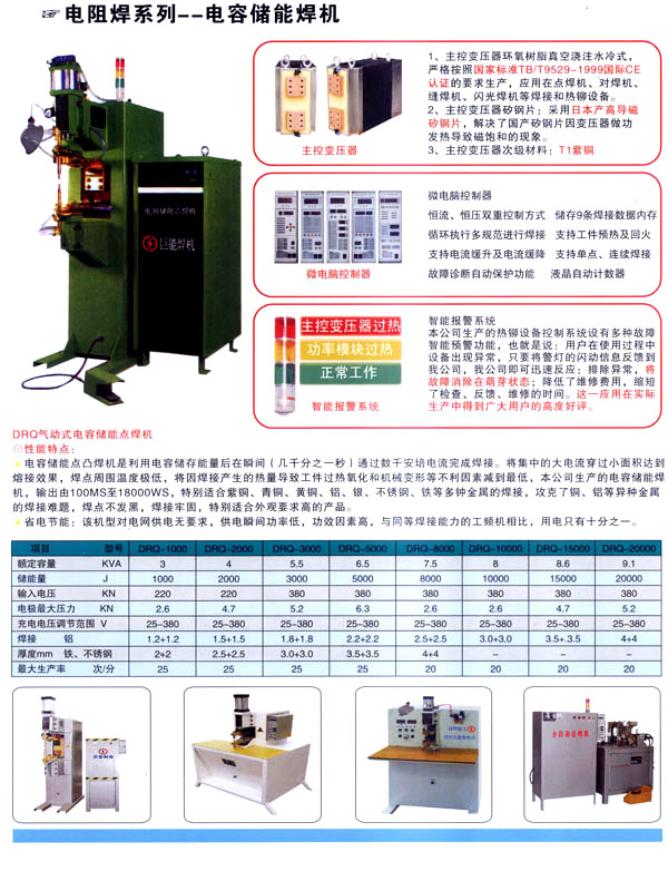 焊割主要產(chǎn)品有:點焊機(jī)系列、縫焊機(jī)系列、環(huán)縫焊接機(jī)床、凸焊機(jī)、排焊機(jī)、儲能焊機(jī)、對焊機(jī)、龍門焊機(jī)、太陽能焊接設(shè)備和機(jī)器人焊接系統(tǒng)及外圍設(shè)備等;并為用戶設(shè)計制造專用焊接設(shè)備。