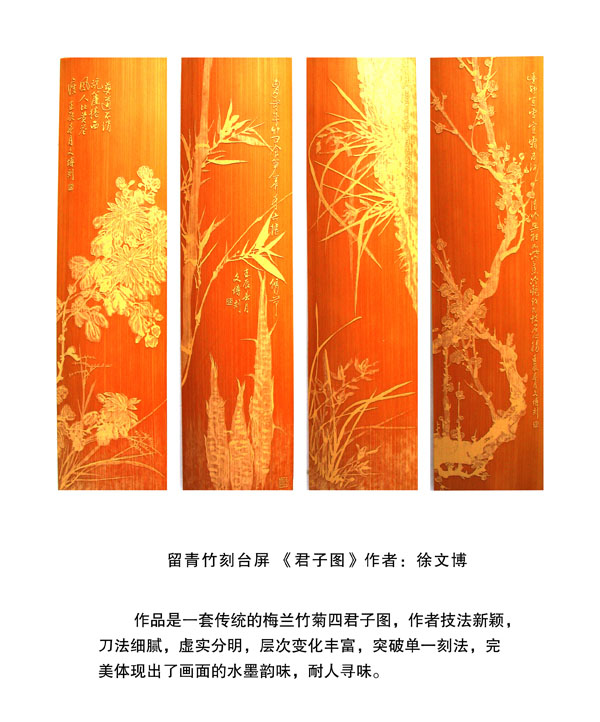 徐博(藝名文博),1973年生,江蘇武進(jìn)人,江蘇省省名人,高級(jí)工藝美術(shù)師,常州市留青竹刻非遺傳承人,常州工藝美術(shù)家協(xié)會(huì)理事,被譽(yù)為當(dāng)今中國(guó)最具創(chuàng)新意識(shí)的新銳竹刻家代表,多次獲得國(guó)家工藝美術(shù)大獎(jiǎng)?釔(ài)留青竹刻的徐文博賞竹為樂(lè),以竹詠志,借竹抒懷,悉心探索留青竹刻的藝術(shù)表現(xiàn)。在中國(guó)工藝美術(shù)大師蕭劍波的精心指導(dǎo)下,開(kāi)創(chuàng)留青水墨山水之技法,更好的體現(xiàn)了竹刻淡雅清秀的藝術(shù)風(fēng)格,并不斷汲取書畫、攝影、雕塑等藝術(shù)精華,不斷滋養(yǎng)藝術(shù)情趣,提升擴(kuò)展胸襟人格的同時(shí)也逐步形成了其形神兼?zhèn),虛?shí)相生,氣韻生動(dòng)的藝術(shù)特點(diǎn),作品為眾多的國(guó)內(nèi)外收藏家珍藏。