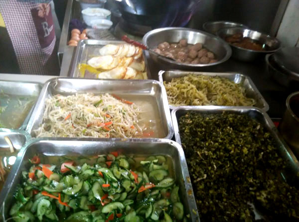 魁元面館,橫山橋江南路,沿街的店鋪。老板娘徐文霞,從公婆手里接過這個店面已有20多年。最具特色的菜品是肉圓跟大排。每天凌晨3點就要起來做準(zhǔn)備,菜都是現(xiàn)燒現(xiàn)賣。 特色小菜: 肉圓:有人特意遠道而來打包走 大排面:每天能賣出100來塊大排 大腸 雞蛋:每天煎的雞蛋就差不多300來個 小餛飩、大餛飩 限時供應(yīng): 咸鴨蛋、肉粽、蛋黃粽:每天都要包,放爐子燒,在端午前后供應(yīng),很好吃。每天都有人打包幾個咸鴨蛋或者粽子拿回家,送人 油酥餅(圖3-4)、糍團餅(圖5-6)、韭菜餅(圖7-8) 油酥餅每天晚上做,涼了更好吃,更酥更脆,里面都是很香的黑芝麻;糍團餅,每天中午擺攤熱了煎鍋開始煎,糯米做成,用菜籽油煎至金黃,餡兒是黑芝麻瓜子仁;韭菜餅是最受歡迎的,每天都有好多人排隊來買。供應(yīng)時間:每年的4月份到11月份 下午1點到5點半。