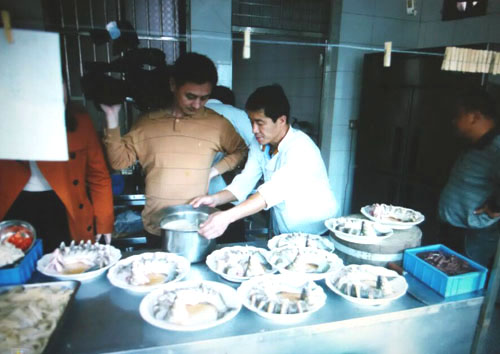 張萬成羊莊一家綜合性的公司,下設(shè)酒店,羊產(chǎn)品加工廠,屠宰廠,山羊養(yǎng)殖場。 酒店位于常州西夏墅浦河村,酒店羊宴規(guī)模占地30畝,酒店主要經(jīng)營特色全羊宴。 一個祖?zhèn)鞯臍⒀虼髴,傳到張萬成,已是第六代了。張家的羊肉,素來以肉質(zhì)鮮美著稱,張萬成羊莊的主人張建龍是第六代傳人,張家的羊肉素來以肉質(zhì)鮮美著稱,從常州新北區(qū)沿黃河西路往機場方向直行至羅溪右轉(zhuǎn),穿過滬寧高速高架橋后不遠(yuǎn)處左拐沿翠屏湖路直走便能看到張萬成羊莊,酒店上下共有三層,2000多平方米經(jīng)營面積,能同時接待近30桌客人的規(guī)模。有自己的羊圈和屠宰場,每天殺20多只,菜式近100道。光是原料,就從原來羊身上的幾個主要部位,增加到除了羊牙齒以外的一只整羊全部可以入菜。烹制方式,更是在本土單一的燒、炒、煮基礎(chǔ)上,借鑒了東北、廣東、四川等地的烹羊特色,增加了蒸、涮、烤、煎、炸等多種方式。 注重原汁原味的冷菜 白切羊肉:精選羊頸部的活肉精制而成,肥瘦適中,絲毫沒有一般羊肉的膻味,沾少許張萬成羊莊秘制的醬料,口感非常好。 美味羊舌:張家的羊舌感覺是用特殊的醬料腌制過的,咸中略有甜味,口感鮮嫩卻肥而不膩,味道很香。 除了白切羊肉和羊舌以外還有許多冷菜品種,如羊肚、羊心、羊耳朵等。。 火候控制精準(zhǔn)的炒菜 炒羊肝:地道的農(nóng)家風(fēng)味,與大蒜葉同炒,蒜香濃郁,羊肝鮮嫩,這羊肝可是火候菜,羊肝鮮嫩與否不但取決于廚師對火候的掌握,還在于上桌放置時間的長短,所以羊肝上桌后要盡快食用,看羊肝是否鮮嫩,只需用筷子挑起并輕輕抖動,有彈性者為佳。 美味羊?qū)殻阂跃曼S、鮑味菇爆炒的羊?qū)殻f是滋補壯陽的一道金貴菜,配料講究的燒菜系列 宮廷燴羊肚:較為金貴的菜品,配菜貴于主料,是以名貴的素鮑和新鮮的筍絲與羊肚同煮,口感濃郁,營養(yǎng)豐富。 海參白燒羊肉:將取自7個月大羔羊身上的帶皮腿肉與海參一同煨煮,菜肴美容滋補,兩種鮮味互相補益達(dá)到完美交融狀態(tài),口感甚佳。 魚羊鮮:新鮮的青魚配上羊肉,既有本地羊肉的肥嫩,又有魚肉的鮮香,鮮!鮮!古代人造字就是有道理!”店里可以根據(jù)客人的需要配以魚回魚、鯰魚、鱖魚等。 特色的羊宴點心 羊肉餛飩:羊莊老板自創(chuàng)的羊宴點心,看似普通的油燜跑蛋卻另有乾坤,將蛋掀開便能看見藏于其中的羊肉菜餡餛飩,菜和肉都是自家新鮮的原料,很好吃。 手工搟面:不知道是因為面是真正用手工搟制還是因為加入了鮮味十足的羊湯,總之味道非常好,面勁道,湯也鮮美! 張萬成羊莊的羊湯也是遠(yuǎn)近聞名,因為是祖?zhèn)鞯氖炙嚕龀鰜淼难驕恍炔浑,香醇不膩,味道十分鮮美,加入粉絲或者面條更是難得的美味。