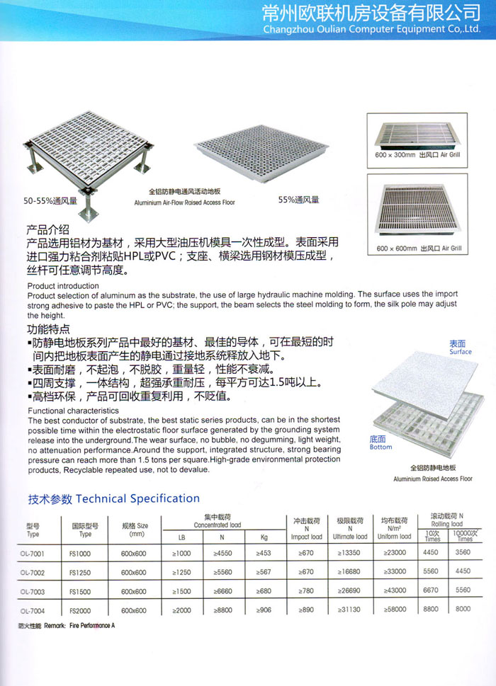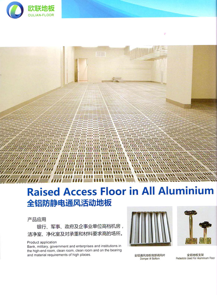 防靜電高架活動(dòng)地板、全鋼地板、陶瓷地板是計(jì)算機(jī)行業(yè)發(fā)展起來(lái)的新型鋪地材料,隔離了潮氣、靜電灰塵,最重要的是解決了綜合布線問(wèn)題,無(wú)需預(yù)埋管線,可隨時(shí)拆卸、搬移,保證了資訊設(shè)備完整的優(yōu)點(diǎn),適應(yīng)了智能化樓宇中信息自動(dòng)化技術(shù)對(duì)所處環(huán)境的特定要求,避免了廣大客戶(hù)的雙重投資,使現(xiàn)代化辦公程度更加高效,辦公場(chǎng)所更加舒適。 “歐聯(lián)”系列全鋼地板,符合國(guó)家安全要求,種類(lèi)完備多樣,其中防靜電陶瓷地板、硫酸鈣地板等除具有普通瓷質(zhì)的裝飾和實(shí)用性外,其耐磨、防水、防火功能優(yōu)于其它同類(lèi)產(chǎn)品,防靜電系列地板,能切合不同客戶(hù)的要求,其靈活的配置,深受客戶(hù)歡迎,不同材質(zhì)的地板結(jié)構(gòu)使設(shè)計(jì)師的設(shè)計(jì)空間比傳統(tǒng)的更加廣闊自由和善變。 公司大力發(fā)展國(guó)內(nèi)外銷(xiāo)售業(yè)務(wù),多次中標(biāo)國(guó)內(nèi)重點(diǎn)工程 ,例:哈爾濱醫(yī)科大學(xué)、山東大學(xué)、上海普通機(jī)場(chǎng)等。 公司將一如既往開(kāi)發(fā)和制造一流的產(chǎn)品,愿與廣大有識(shí)之士合作發(fā)展,共創(chuàng)美好未來(lái)。