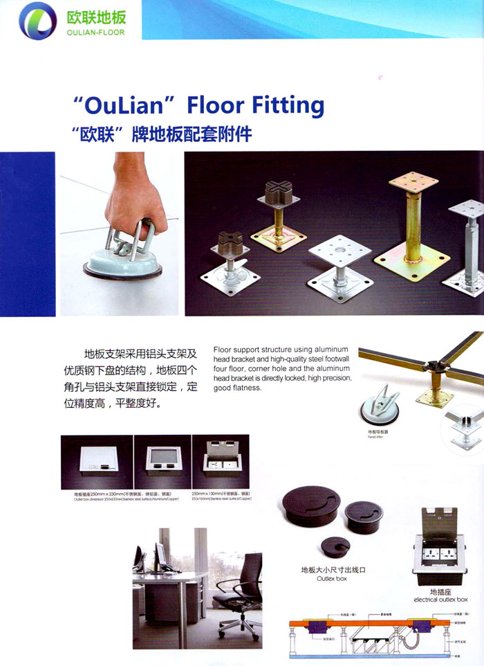 防靜電高架活動(dòng)地板、全鋼地板、陶瓷地板是計(jì)算機(jī)行業(yè)發(fā)展起來的新型鋪地材料,隔離了潮氣、靜電灰塵,最重要的是解決了綜合布線問題,無需預(yù)埋管線,可隨時(shí)拆卸、搬移,保證了資訊設(shè)備完整的優(yōu)點(diǎn),適應(yīng)了智能化樓宇中信息自動(dòng)化技術(shù)對(duì)所處環(huán)境的特定要求,避免了廣大客戶的雙重投資,使現(xiàn)代化辦公程度更加高效,辦公場(chǎng)所更加舒適。 “歐聯(lián)”系列全鋼地板,符合國(guó)家安全要求,種類完備多樣,其中防靜電陶瓷地板、硫酸鈣地板等除具有普通瓷質(zhì)的裝飾和實(shí)用性外,其耐磨、防水、防火功能優(yōu)于其它同類產(chǎn)品,防靜電系列地板,能切合不同客戶的要求,其靈活的配置,深受客戶歡迎,不同材質(zhì)的地板結(jié)構(gòu)使設(shè)計(jì)師的設(shè)計(jì)空間比傳統(tǒng)的更加廣闊自由和善變。 公司大力發(fā)展國(guó)內(nèi)外銷售業(yè)務(wù),多次中標(biāo)國(guó)內(nèi)重點(diǎn)工程 ,例:哈爾濱醫(yī)科大學(xué)、山東大學(xué)、上海普通機(jī)場(chǎng)等。 公司將一如既往開發(fā)和制造一流的產(chǎn)品,愿與廣大有識(shí)之士合作發(fā)展,共創(chuàng)美好未來。